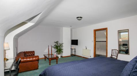 Outside the property is approached through double entrance gates over a stone driveway with ample parking and turning between the house and the large workshop/store. This houses the solar photovoltaic system, this is able to provide electricity and hot water to the home all year round. This coupled with triple glazing and recently upgraded heating system adds to the allure of this handsome property. Additional outbuildings and greenhouse are also adjacent to main shed.